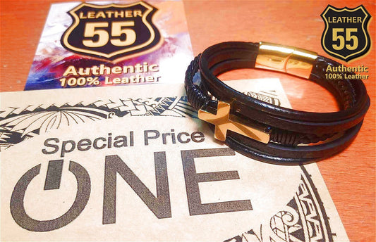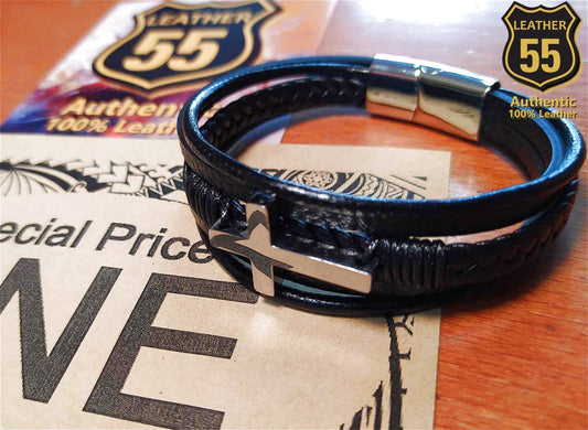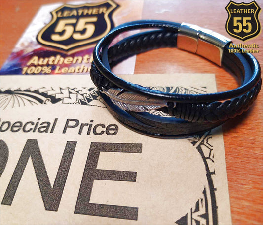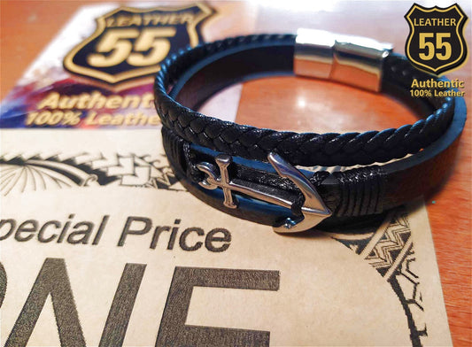 Leather 55 Ανδρικό Xειροποίητο Δερμάτινο βραχιόλι με ανοξείδωτο ατσάλι / Κωδικός Προϊόντος: C127