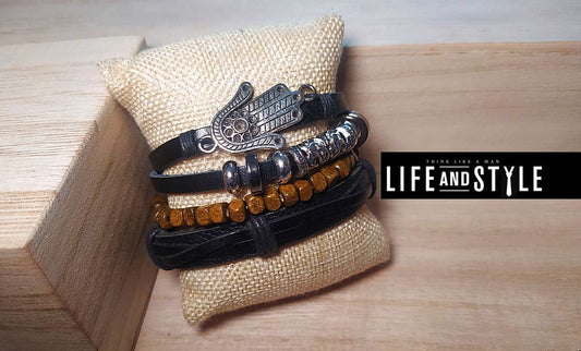 Leather 55 Ανδρικό Xειροποίητο Δερμάτινο βραχιόλι με ανοξείδωτο ατσάλ / Κωδικός Προϊόντος: C107