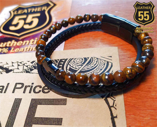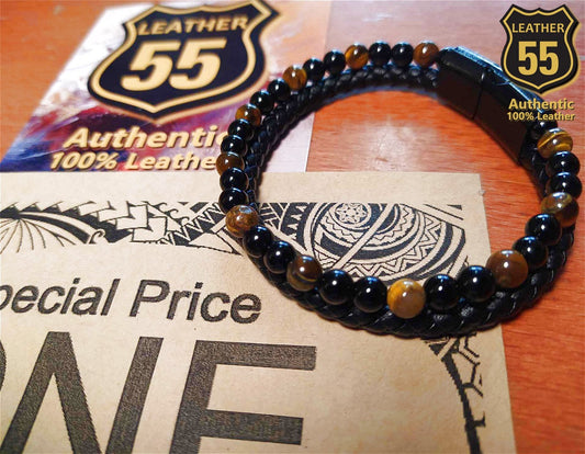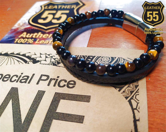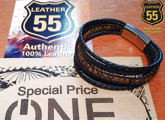 Leather 55 Ανδρικό Xειροποίητο Δερμάτινο βραχιόλι με ανοξείδωτο ατσάλι / Κωδικός Προϊόντος: C106