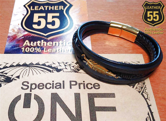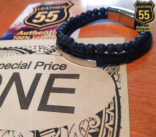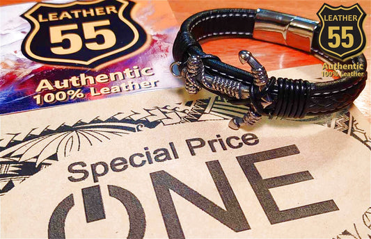 Leather 55 Ανδρικό Xειροποίητο Δερμάτινο βραχιόλι με ανοξείδωτο ατσάλι / Κωδικός Προϊόντος: C101