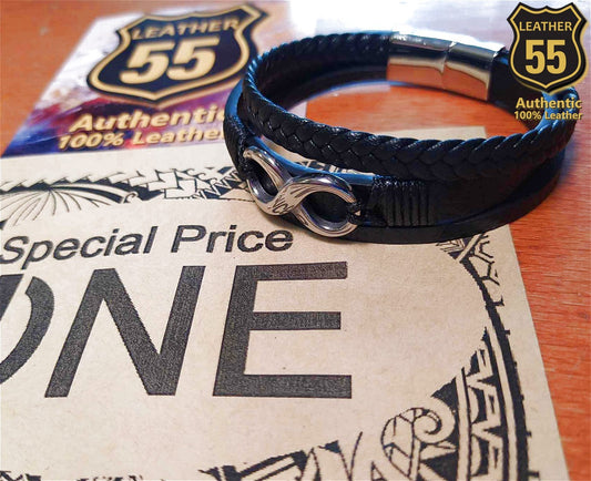 Leather 55 Ανδρικό Xειροποίητο Δερμάτινο βραχιόλι με ανοξείδωτο ατσάλι / Κωδικός Προϊόντος: C117