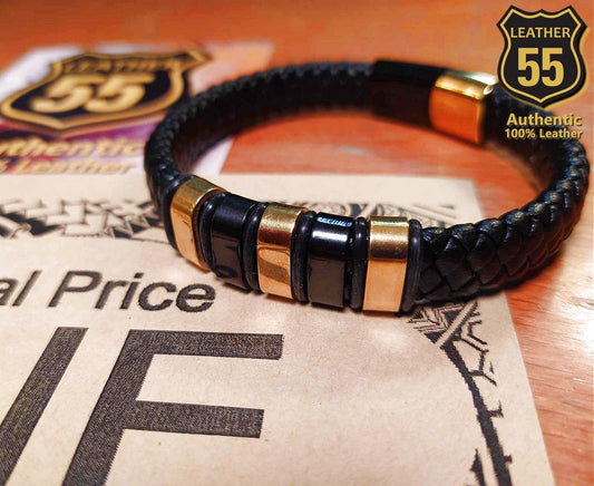 Leather 55 Ανδρικό Xειροποίητο Δερμάτινο βραχιόλι με ανοξείδωτο ατσάλι / Κωδικός Προϊόντος: C126