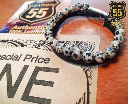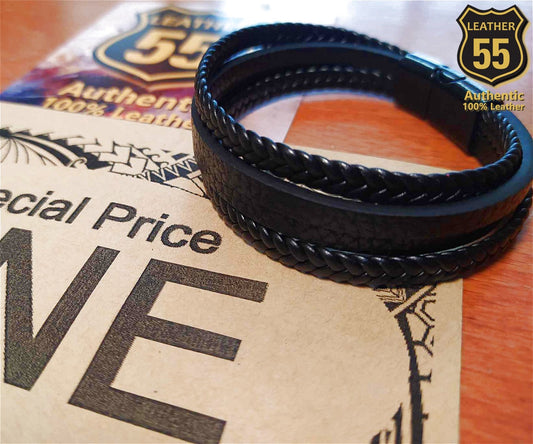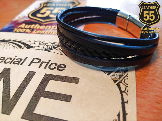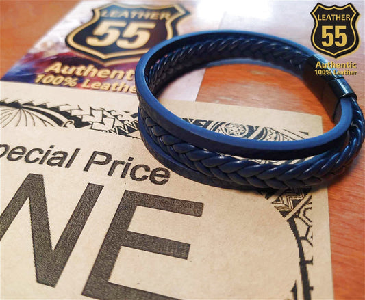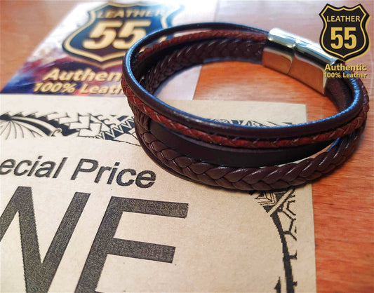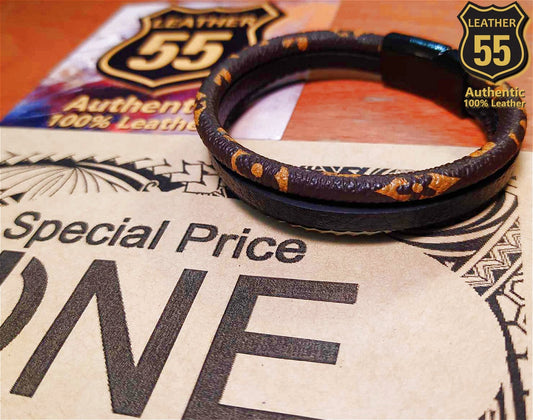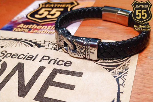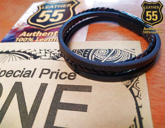 Leather 55 Ανδρικό Xειροποίητο Δερμάτινο βραχιόλι με ανοξείδωτο ατσάλι / Κωδικός Προϊόντος: C170
