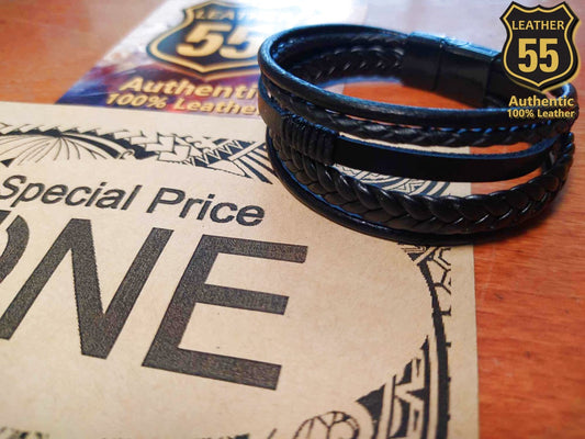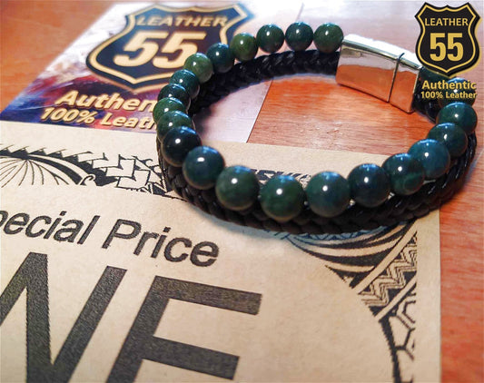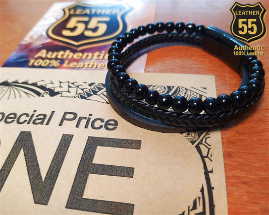 Leather 55 Ανδρικό Xειροποίητο Δερμάτινο βραχιόλι με ανοξείδωτο ατσάλι / Κωδικός Προϊόντος: C180
