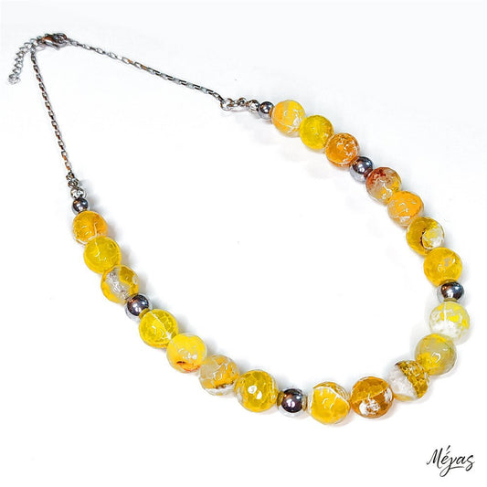 Κολιέ ημιπολύτιμων λίθων φυσικού Αχάτη Ηλιόδωρο και Αιματίτη / Κωδικός Προϊόντος: Ζ133