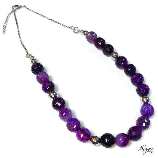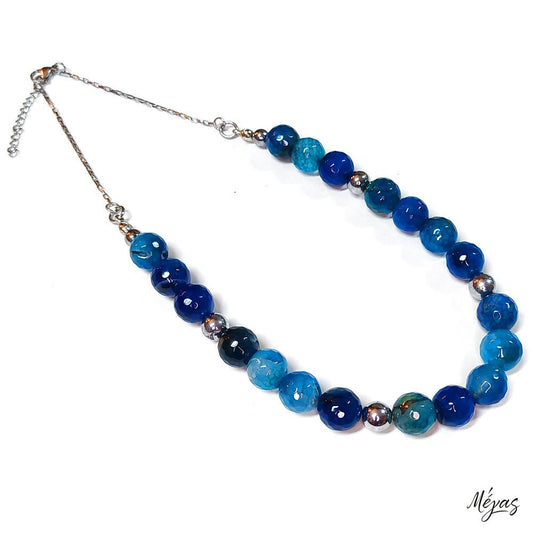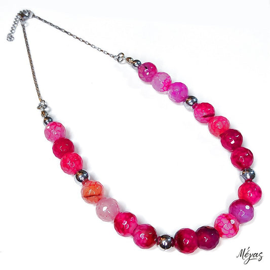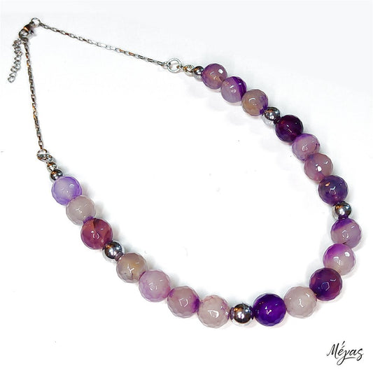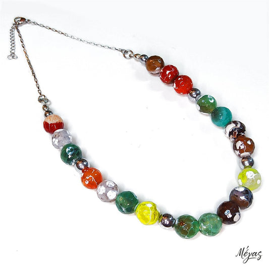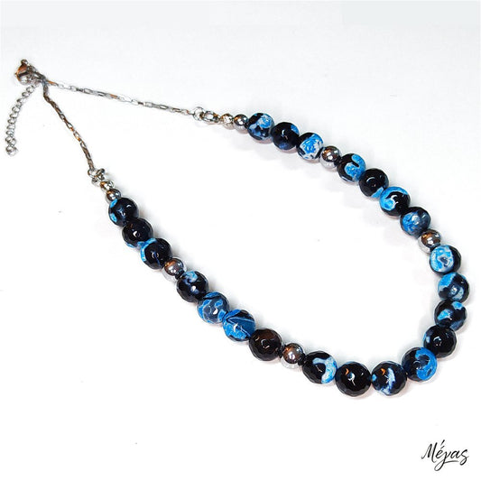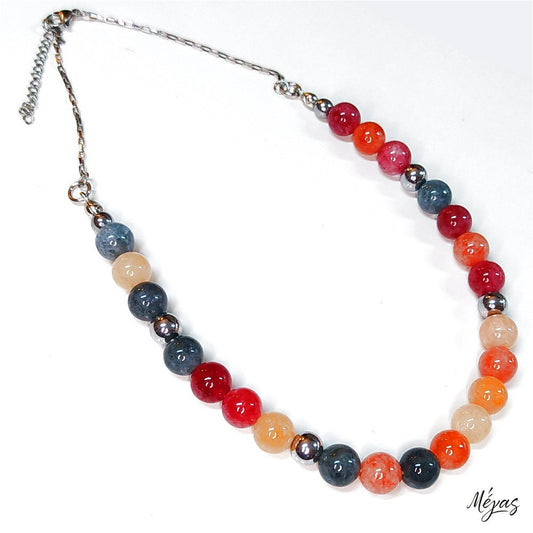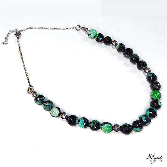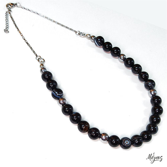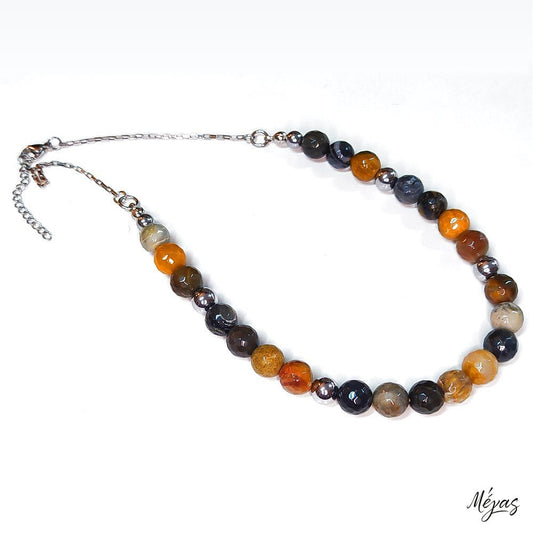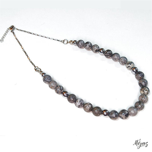 Κολιέ ημιπολύτιμων λίθων φυσικού Αχάτη και Αιματίτη / Κωδικός Προϊόντος: Ζ120