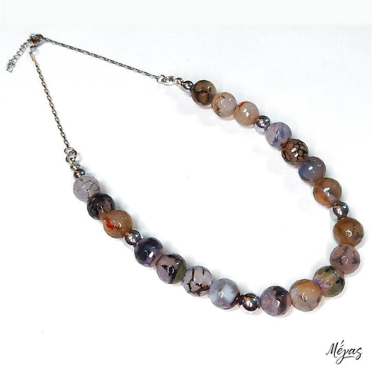 Κολιέ ημιπολύτιμων λίθων φυσικού Αχάτη Dragon Veins και Αιματίτη / Κωδικός Προϊόντος: Ζ121