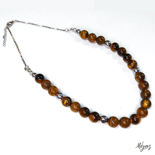 Κολιέ ημιπολύτιμων λίθων φυσικού Μάτι Τίγρης και Αιματίτη / Κωδικός Προϊόντος: Ζ131