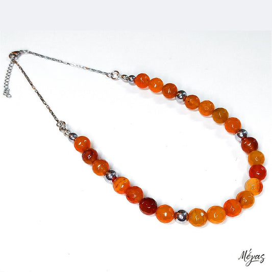 Κολιέ ημιπολύτιμων λίθων φυσικού Πύρινου Αχάτη και Αιματίτη / Κωδικός Προϊόντος: Ζ125