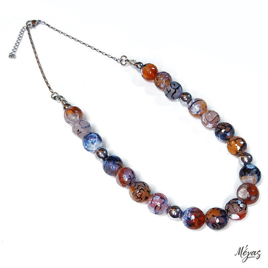 Κολιέ ημιπολύτιμων λίθων φυσικού Αχάτη Dragon Veins και Αιματίτη / Κωδικός Προϊόντος: Ζ122