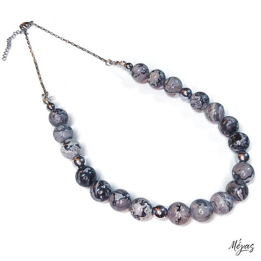 Κολιέ ημιπολύτιμων λίθων φυσικού Αχάτη κρακελέ και Αιματίτη / Κωδικός Προϊόντος: Ζ164