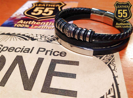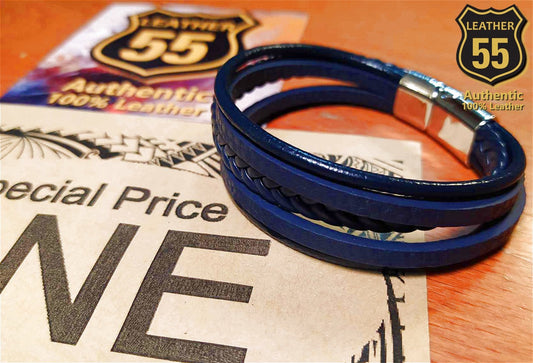 Leather 55 Ανδρικό Xειροποίητο Δερμάτινο βραχιόλι με ανοξείδωτο ατσάλι / Κωδικός Προϊόντος: C127