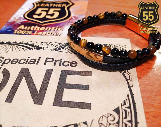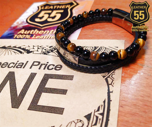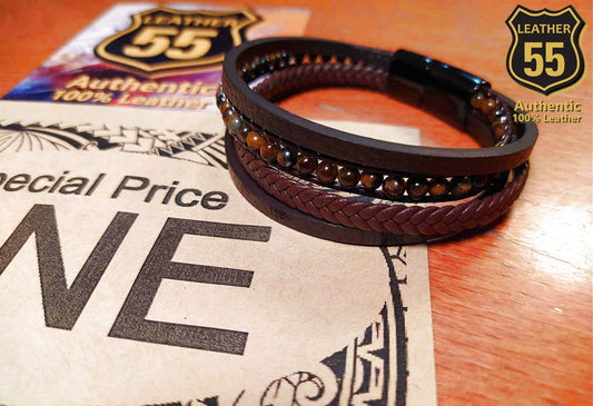 Leather 55 Ανδρικό Xειροποίητο Δερμάτινο βραχιόλι με ανοξείδωτο ατσάλι / Κωδικός Προϊόντος: C129