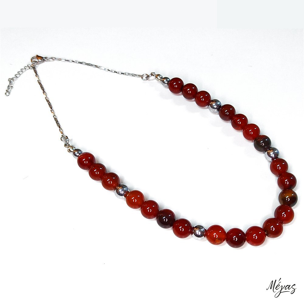 Κολιέ ημιπολύτιμων λίθων φυσικού Πύρινου Αχάτη και Αιματίτη / Κωδικός Προϊόντος: Ζ125